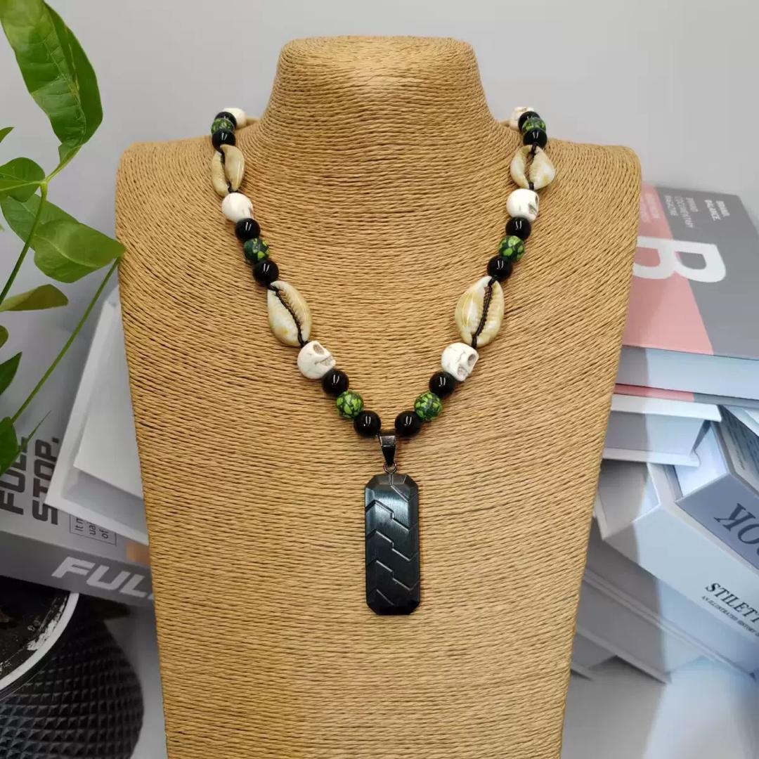 Step into bold style and powerful energy with the Storm Rider Obsidian Warrior Necklace – a striking blend of nature, culture, and modern edge. Handcrafted with authentic cowrie shells, symbolic skull beads, polished black stones, and vibrant green marbled accents, this necklace is more than just jewelry – it’s a statement of strength and individuality.